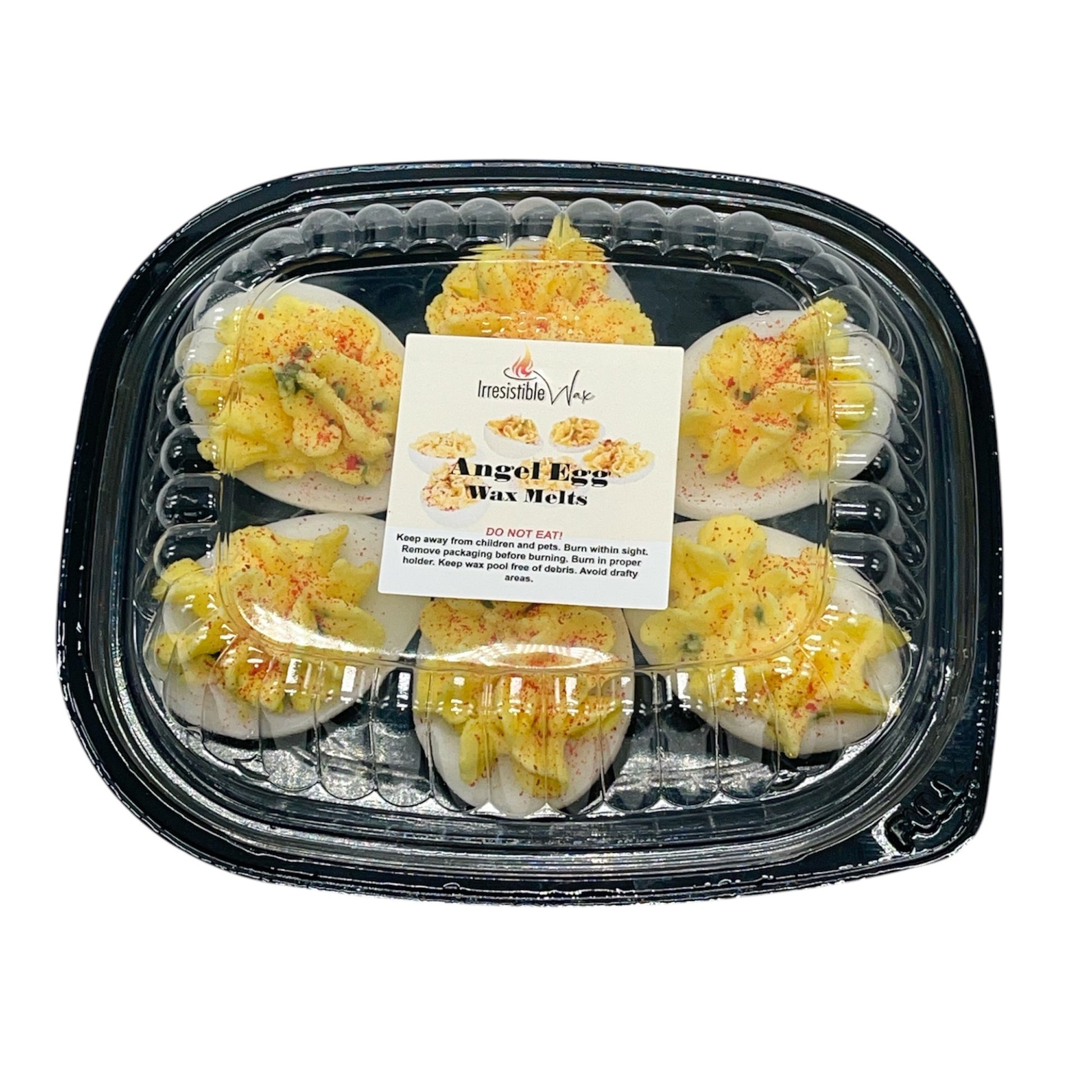 Our deviled egg wax melts looks like the food but has a pleasantly surprising strawberry and lemon fragrance! Includes a set of 6 egg wax melts.